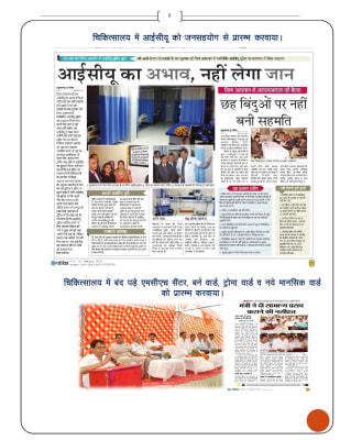 - - चिकित्सालय में आईसीयू को जनसहयोग से प्रारम्भ करवाया।