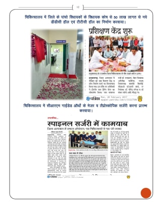 - - चिकित्सालय में सीआरएम गाईडेड ऑर्थो के मेजर व लैप्रोस्कोपिक सर्जरी करना प्रारम्भ करवाया।