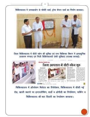 - - जिलाचिकित्सालय में अल्ट्रासाउण्ड मशीन खरीदी एवं मरीजो हेतु सुविधा का प्रारम्भ करवाया।