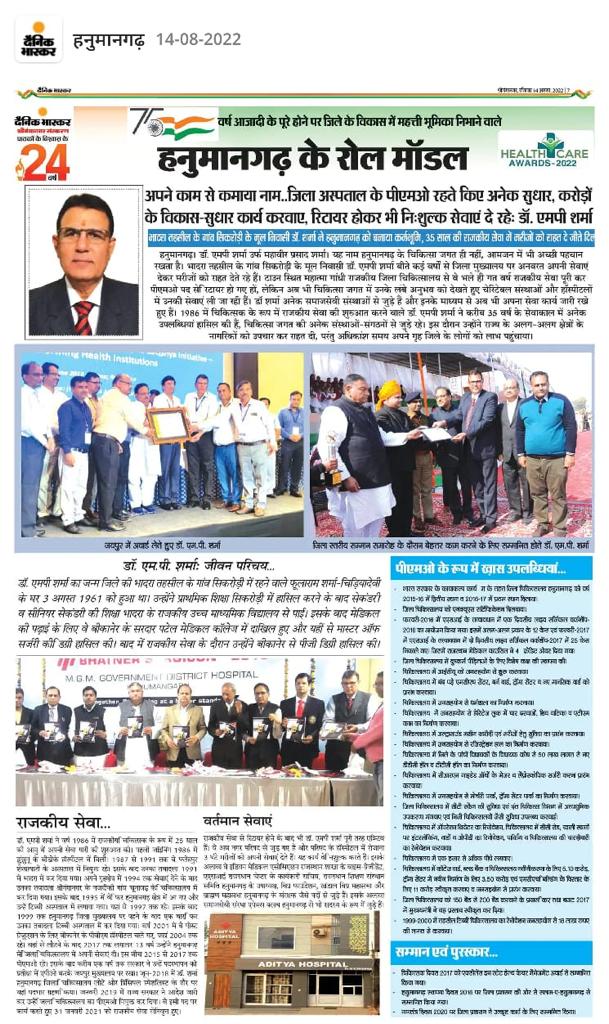 - - हनुमानगढ़ स्थापनादिवस 2016 पर राजस्थान पत्रिका व जिलाप्रसासन हनुमानगढ़ द्वारा सलाम-ए-हनुमानगढ़ से सम्मानित किया गया।